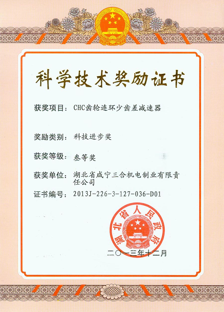 Third prize of Hubei Province Science and technology progress award of gear link
